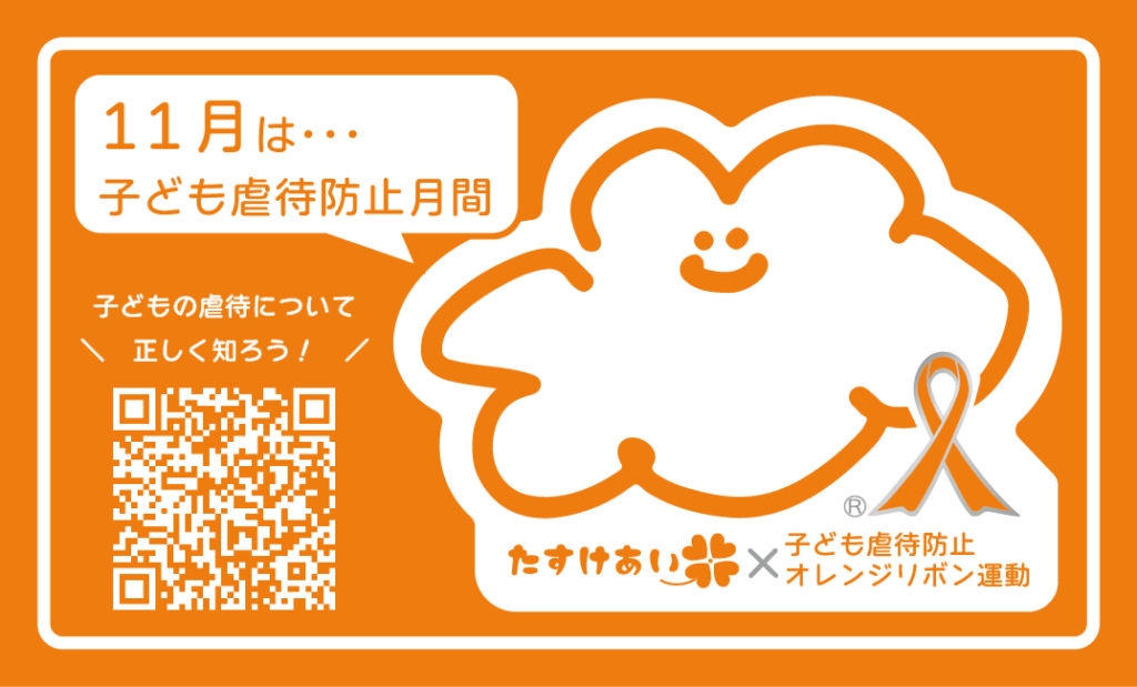 2024年度の「児童虐待防止月間」(11月)にあわせて、子ども虐待防止オレンジリボン運動とコラボしたカードにステッカーを貼り付けて配布しました。