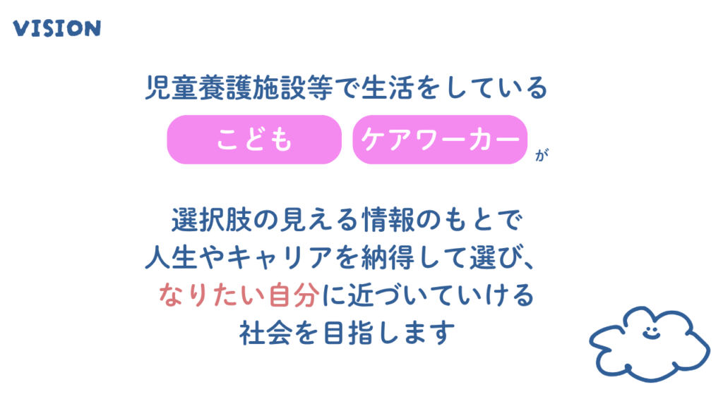 施設で育った私の視点から、さまざまな立場の声を聞き、つなぎながら、必要な人に、必要な情報が届く社会を目指していきます