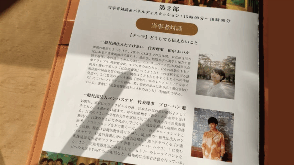 当事者対談で「どうしても伝えたいこと」をテーマに、一般社団法人コンパスナビの代表理事・ブローハン聡さんと一緒に登壇しました。生活のことや活動のこと、これからのこと、ユース第一世代の話まで、多角的な視点で深く語り合える貴重な時間に。