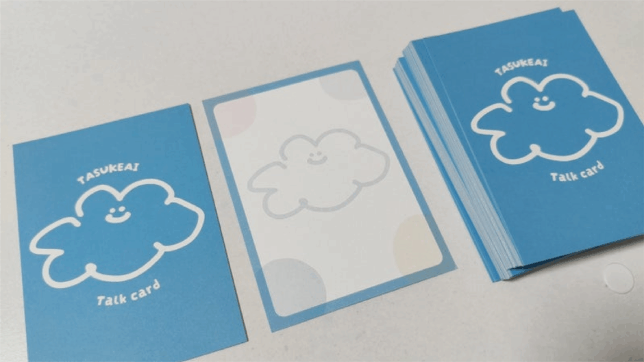 少しの時間でみんなと仲良くなれるようにたすけあいオリジナルのトークカードを使いました。