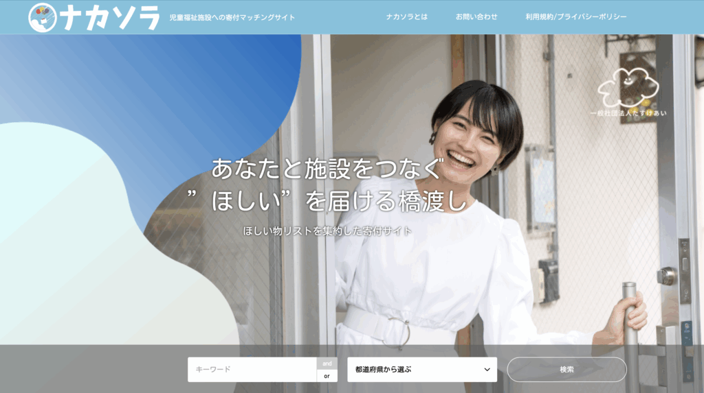 ナカソラは、児童養護施設公開している「Amazonのほしい物リスト」を通じて、必要なものを直接届けられる寄付サイトです。